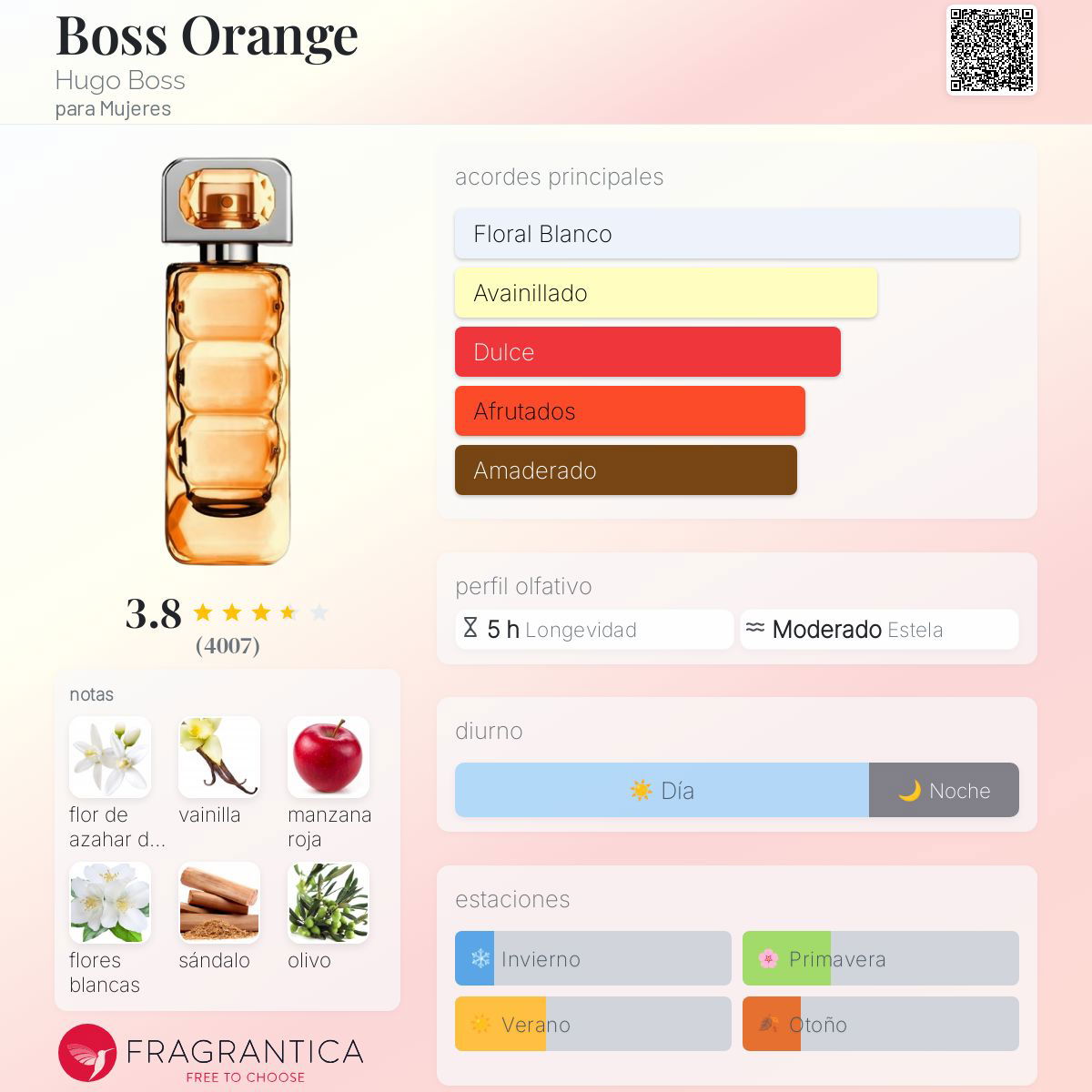 Boss Orange es una fragancia de la familia olfativa Floral Frutal para mujeres, lanzada en el año 2009. Esta encantadora fragancia evoca una sensación de frescura y vitalidad.